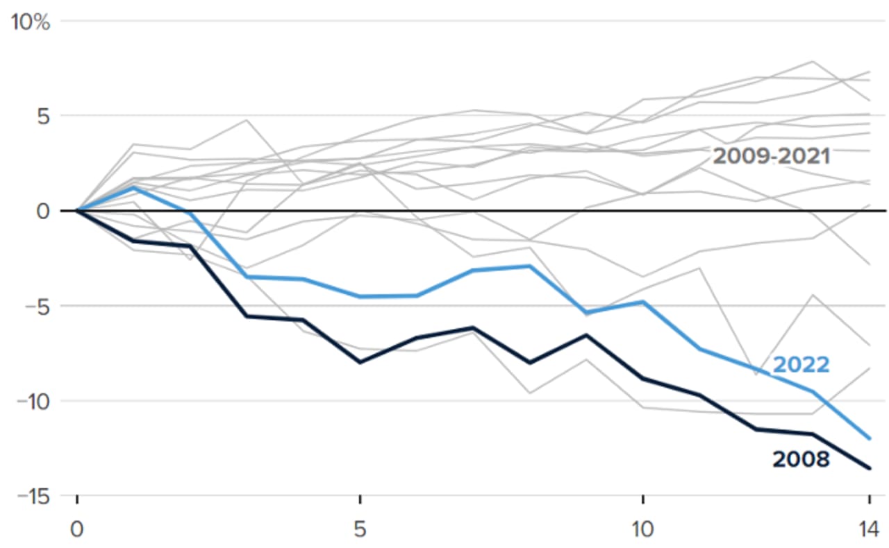 Frykten for økte renter har tynget teknologiindeksen Nasdaq. Hittil i år har nedgangen vært på ca. 13%. Det er særlig vekstselskaper med svak lønnsomhet og høy verdsettelse som har blitt hardt rammet. Den urolige starten på året er ikke uvanlig, selv om det er lenge siden teknologiaksjene har hatt en så dårlig start. Historisk sett har det i gjennomsnitt tatt ca. 4 måneder å hente seg inn etter et markedsfall på denne størrelsen.